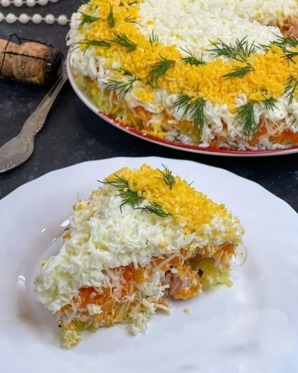 Представляю вам обновлённую версию классической «Мимозы» — с филе форели горячего копчения. Вместо привычной консервы — благородный, чуть дымный вкус и нежная текстура.