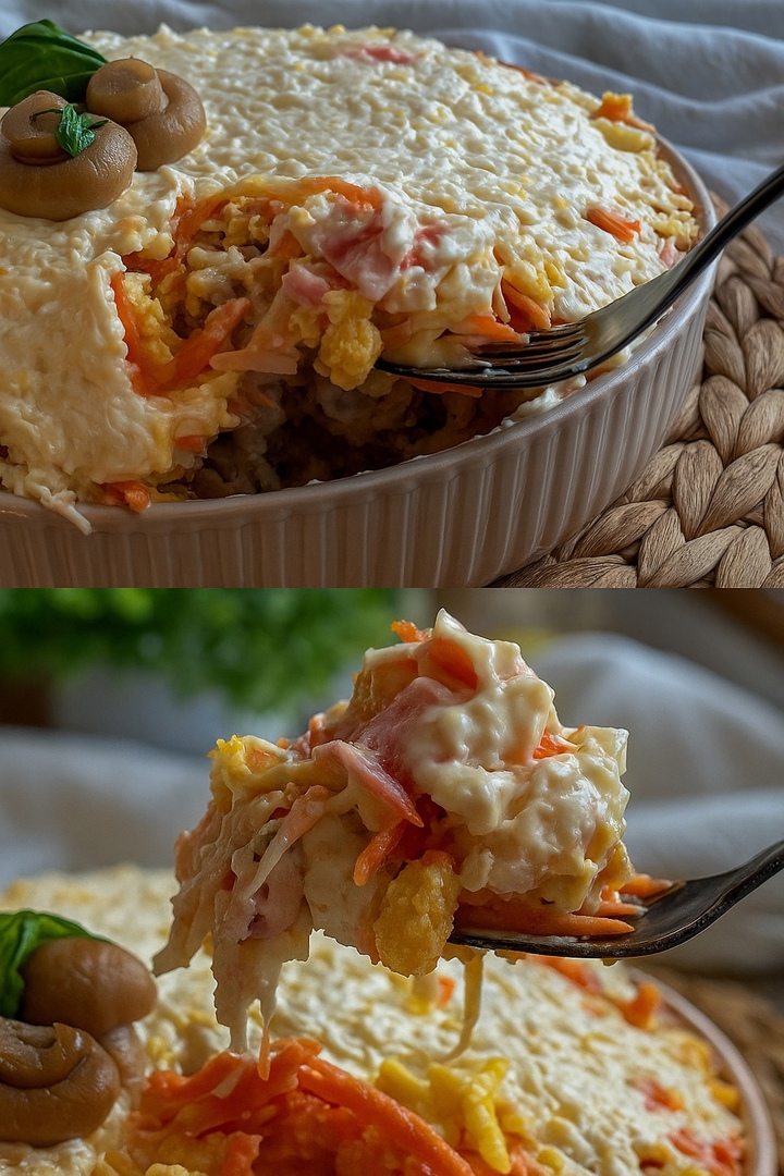Этот салат не просто вкусный, он — настоящий мужской хит! Сочетание нежной курицы, пикантной моркови по-корейски и маринованных шампиньонов создаёт идеальный баланс вкусов, а маринованный лук добавляет изюминку и немного остроты. Каждый слой, пропитанный майонезом, делает этот салат нежным и сочным. Удивите своих близких этим рецептом — он точно не оставит их равнодушными!