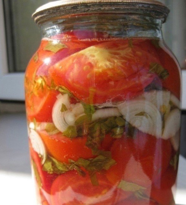 Цей рецепт — справжня знахідка для тих, хто любить мариновані овочі! Томати з цибулею в олії виходять неймовірно смачними: соковиті шматочки томатів поєднуються з ніжною маринованою цибулею, пряним часником та ароматом лаврового листа й перцю горошком. Легка солодкуватість та пікантна кислинка роблять смак гармонійним і насиченим.